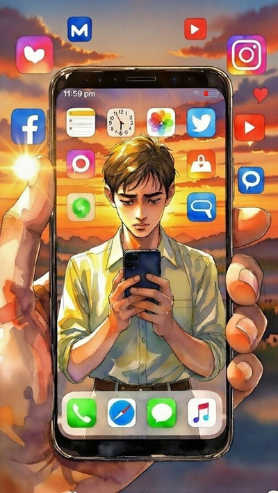 "You watched the blue screen as the bright day slipped away".